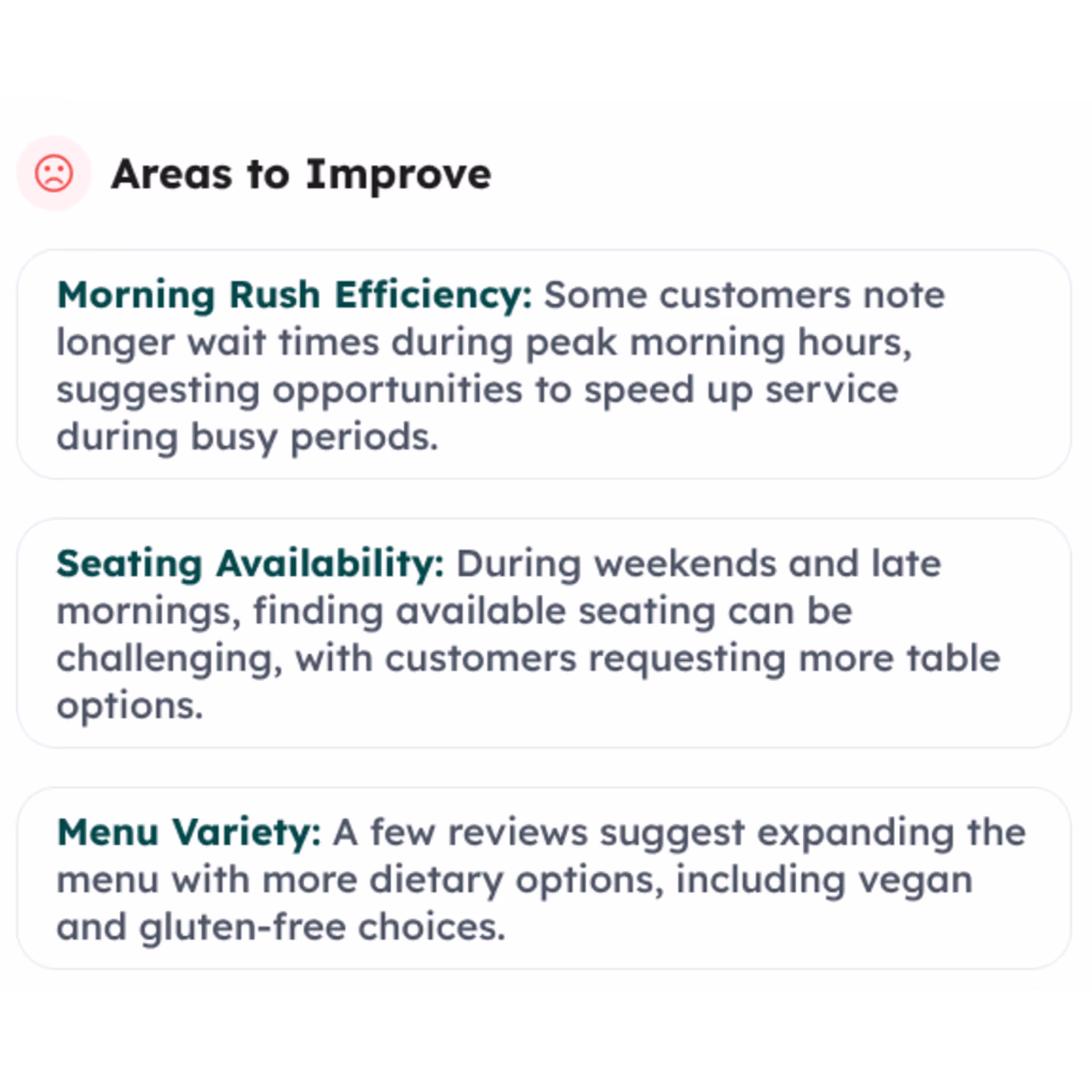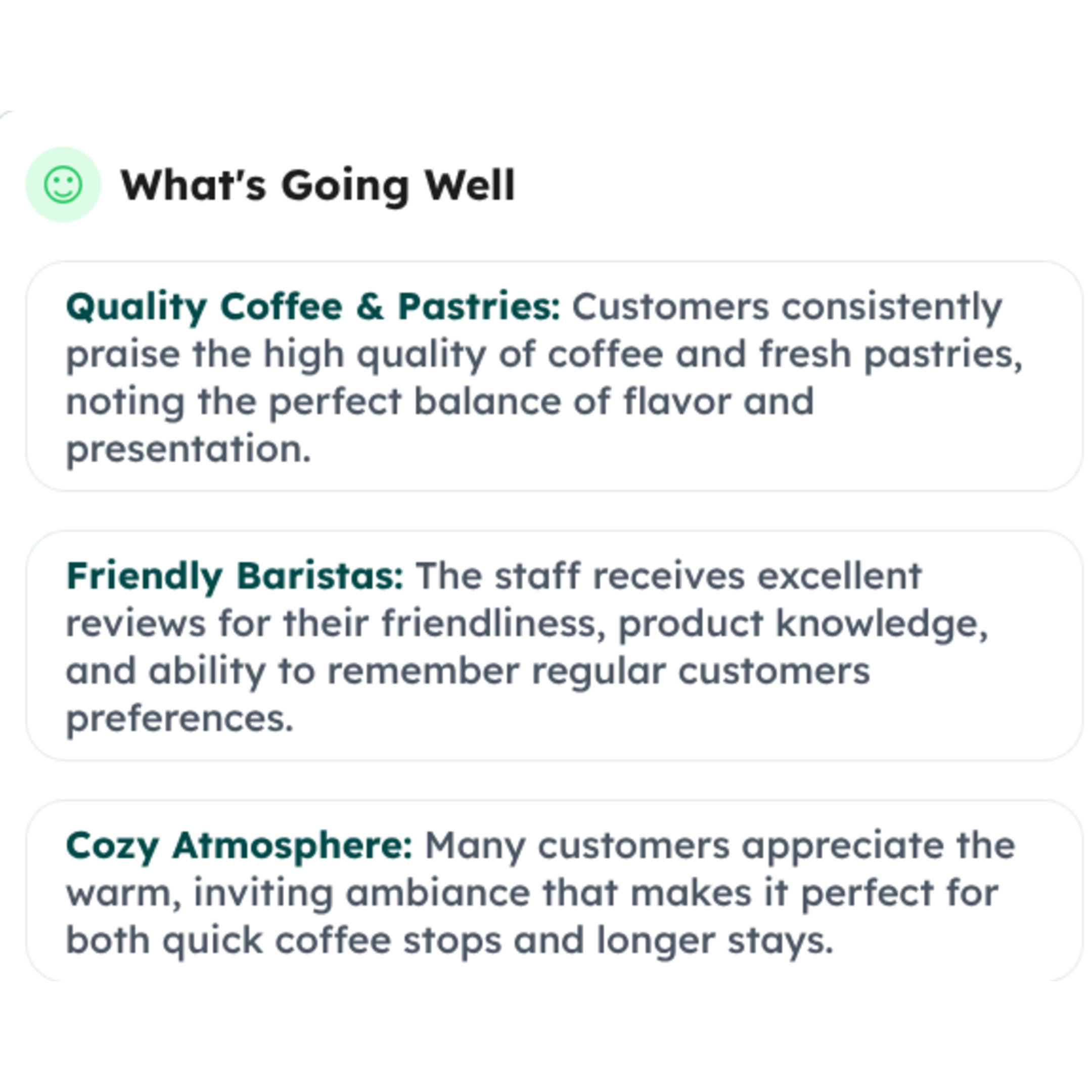 Get clear next steps to improve sentiment, fix friction, and strengthen your authority across every review platform.